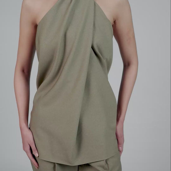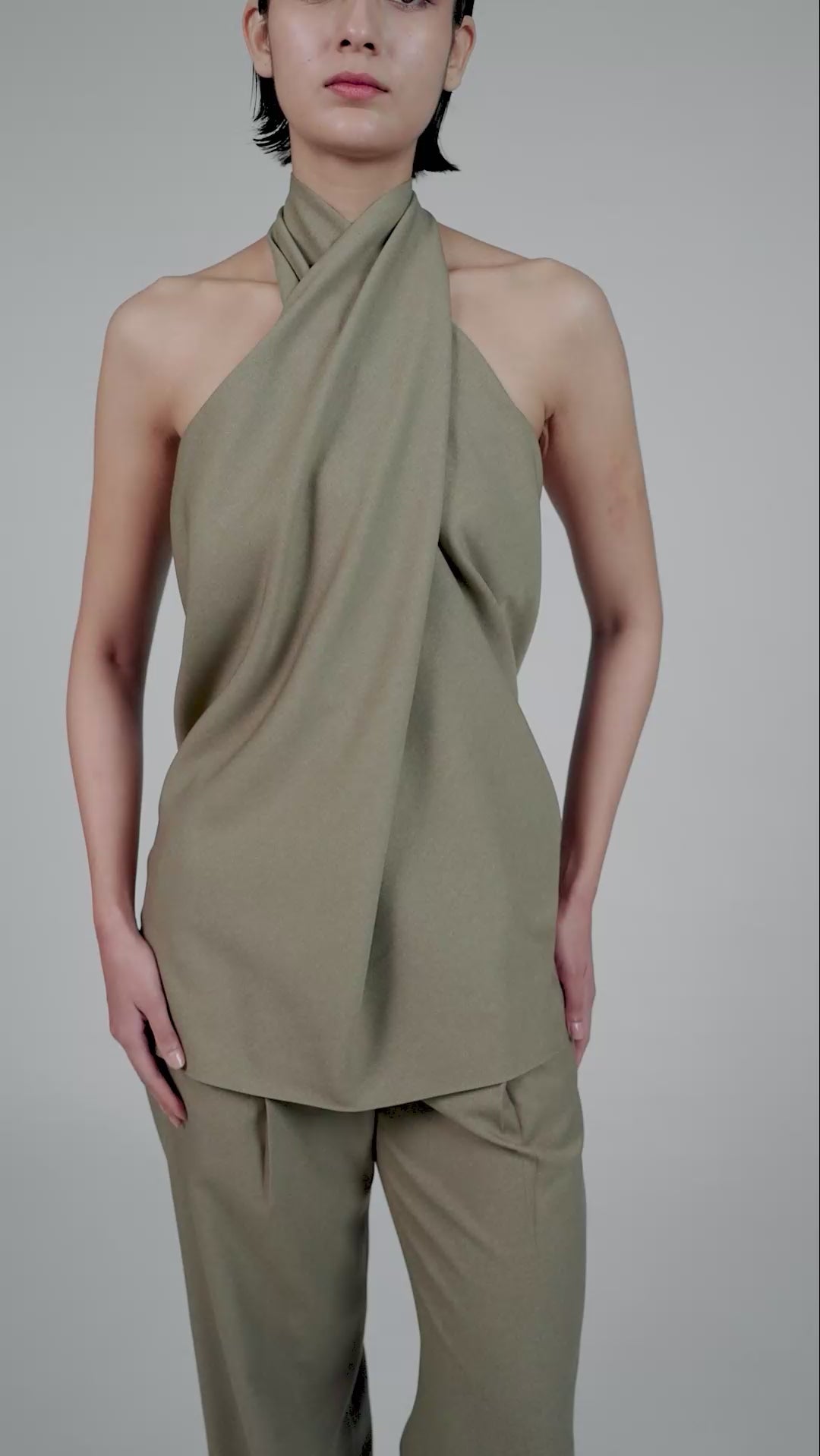 • Includes a halter back, perfect for showcasing a chic silhouette.