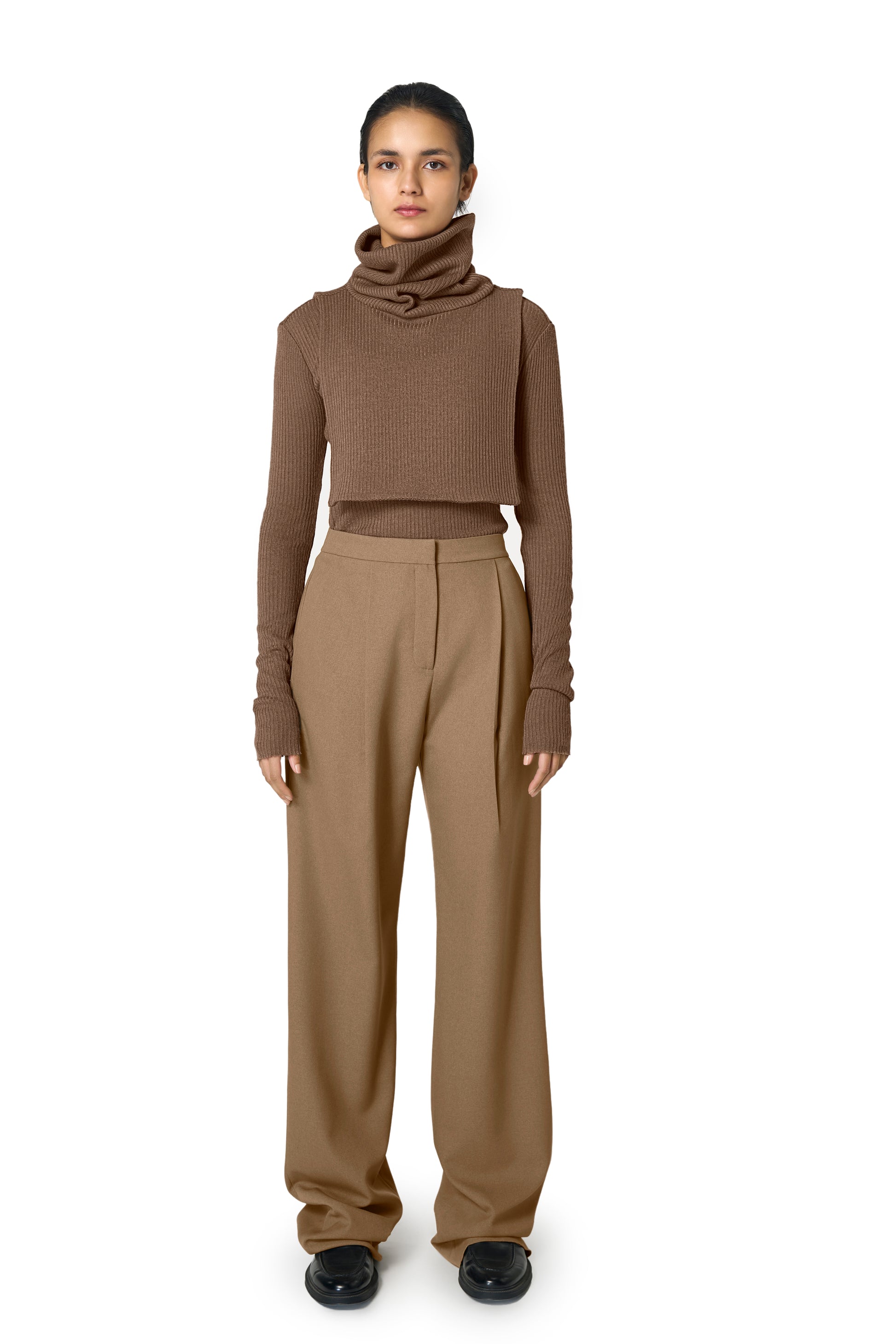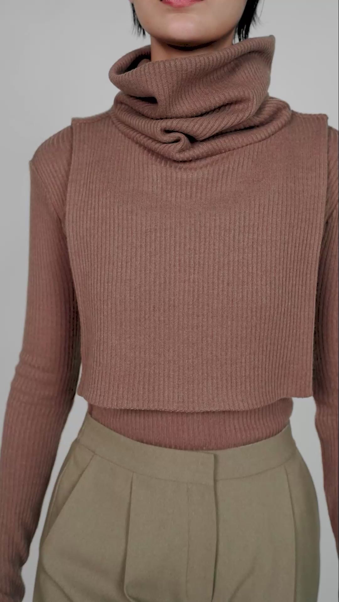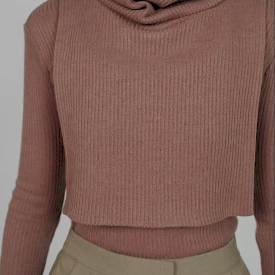 Designed for versatility and style, this cropped layering piece features a cozy, oversized turtleneck and a boxy silhouette that drapes beautifully over fitted tops or dresses.