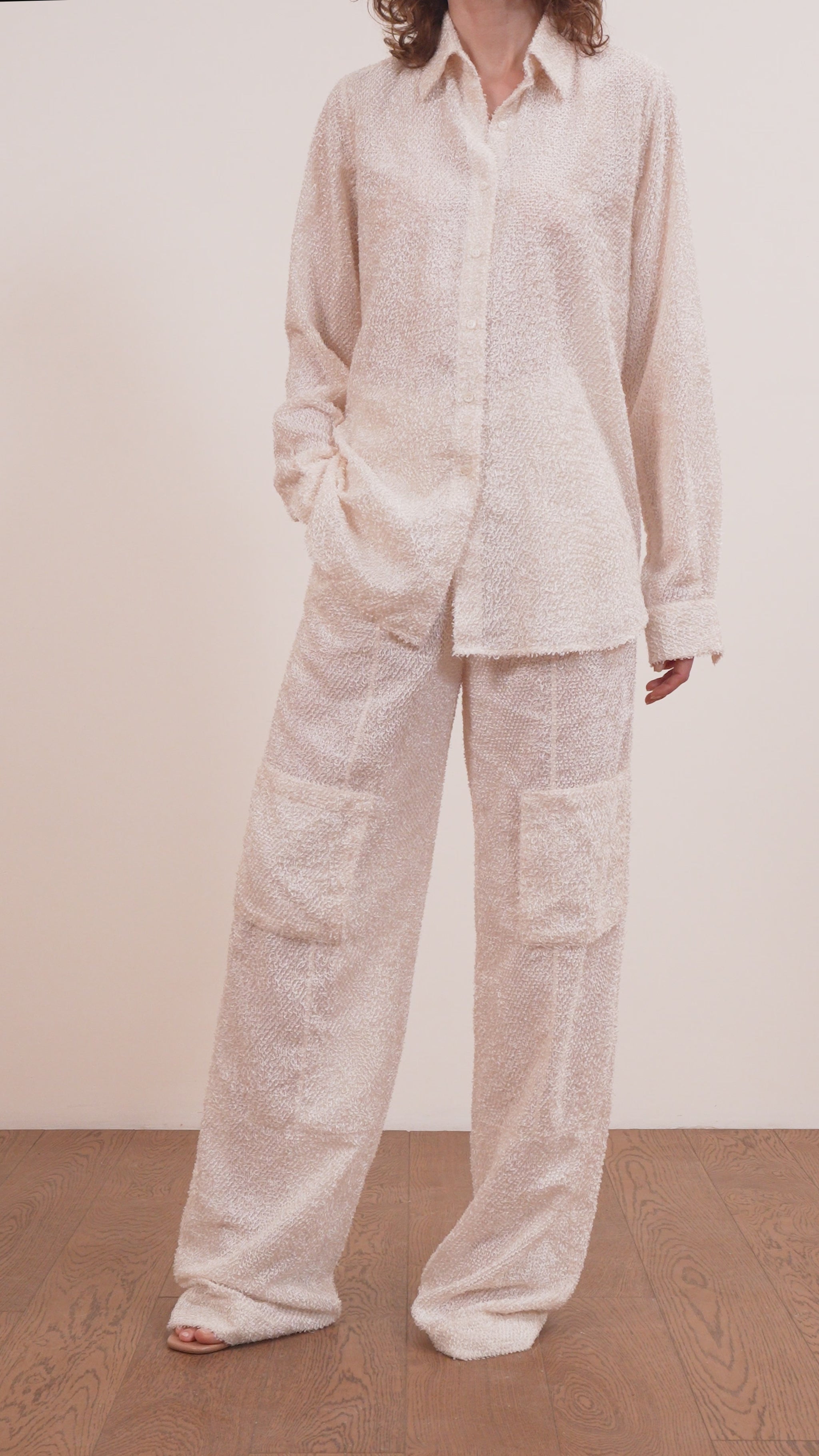 An easy, relaxed button-down shirt crafted in a soft textured fabric. The Lee Shirt features a clean collar, fluid drape, and soft structure that balances ease with refinement. Designed to be paired with the Lee Trousers or styled independently, it offers an elevated take on everyday dressing.