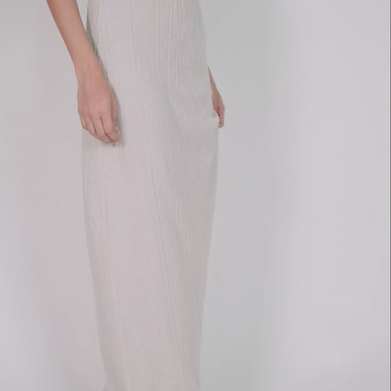 This full-length cable-knit skirt is a core piece designed to be both powerful and comfortable. Crafted from a high-quality, textural knit, its soft beige hue and classic silhouette embody the brand's commitment to timeless, seasonless style.