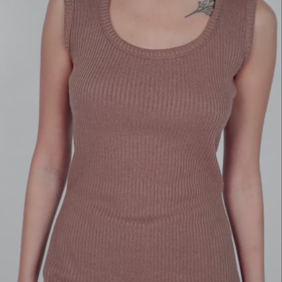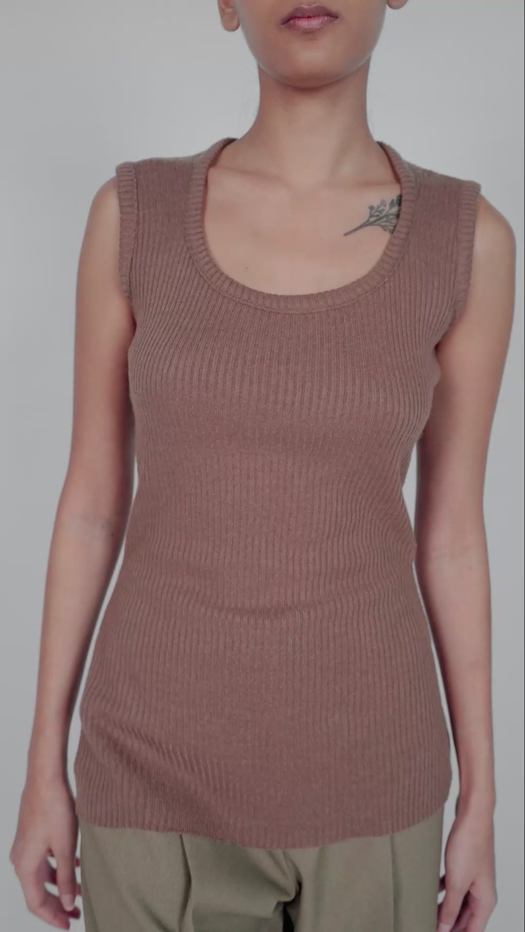 Crafted in soft woolen blend, this classic tank features a deep scoop neckline and wide straps for a modern, sculpted silhouette. Perfect on its own or layered. A wardrobe essential for sure.