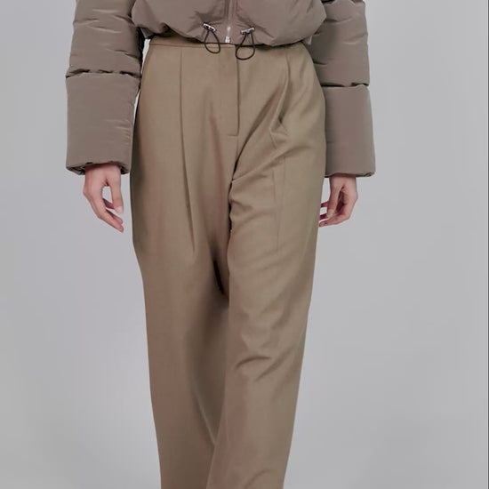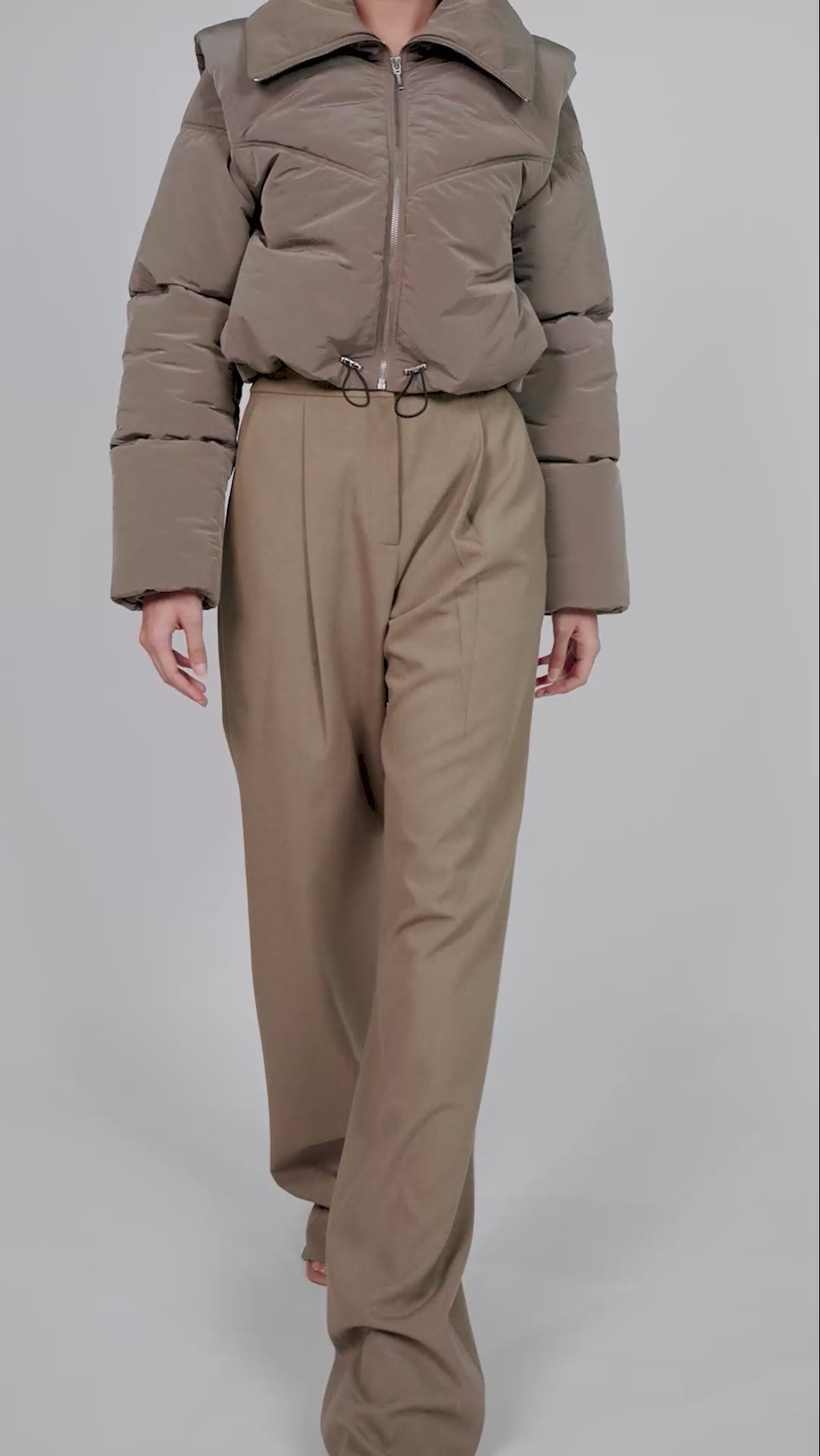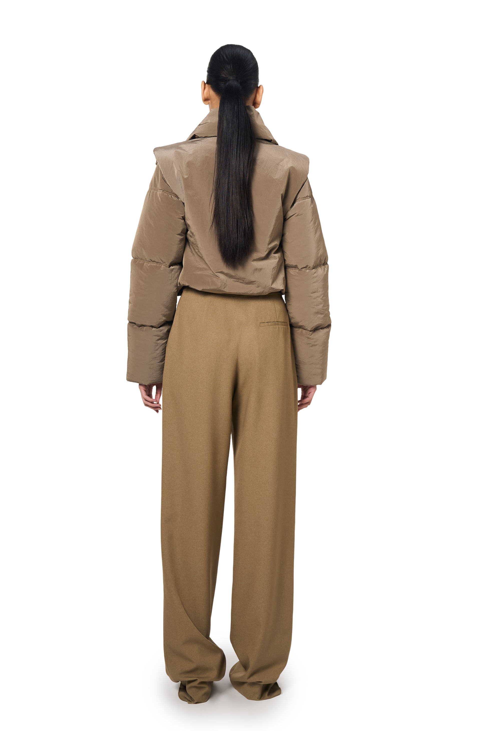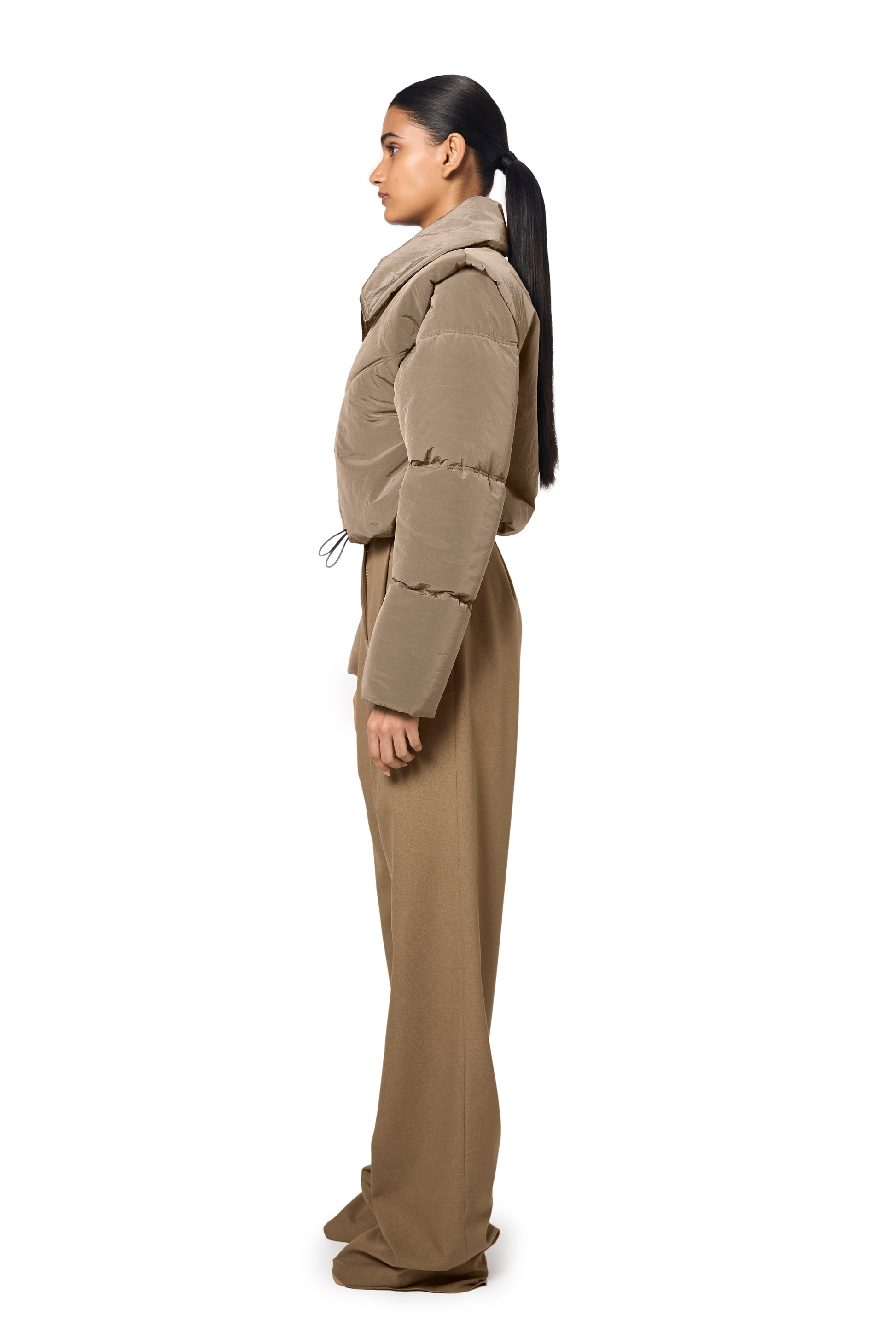 Ura's bestselling Pat Bomber is revisited in a luxe, technical fabric. The cropped length bomber jacket features a front metal zipper closure and a padded design for added warmth. Its wide collar enhances the stylish look, while the sage colour makes it a staple, easy to layer piece in your wardrobe. Comes with adjustable pullers at the hem.