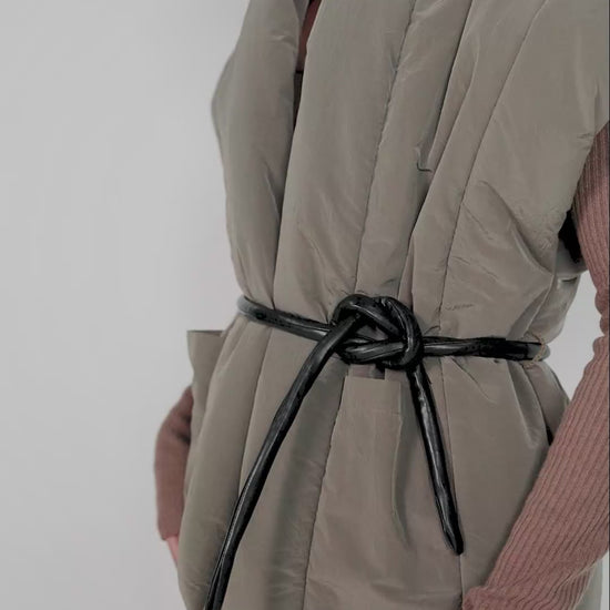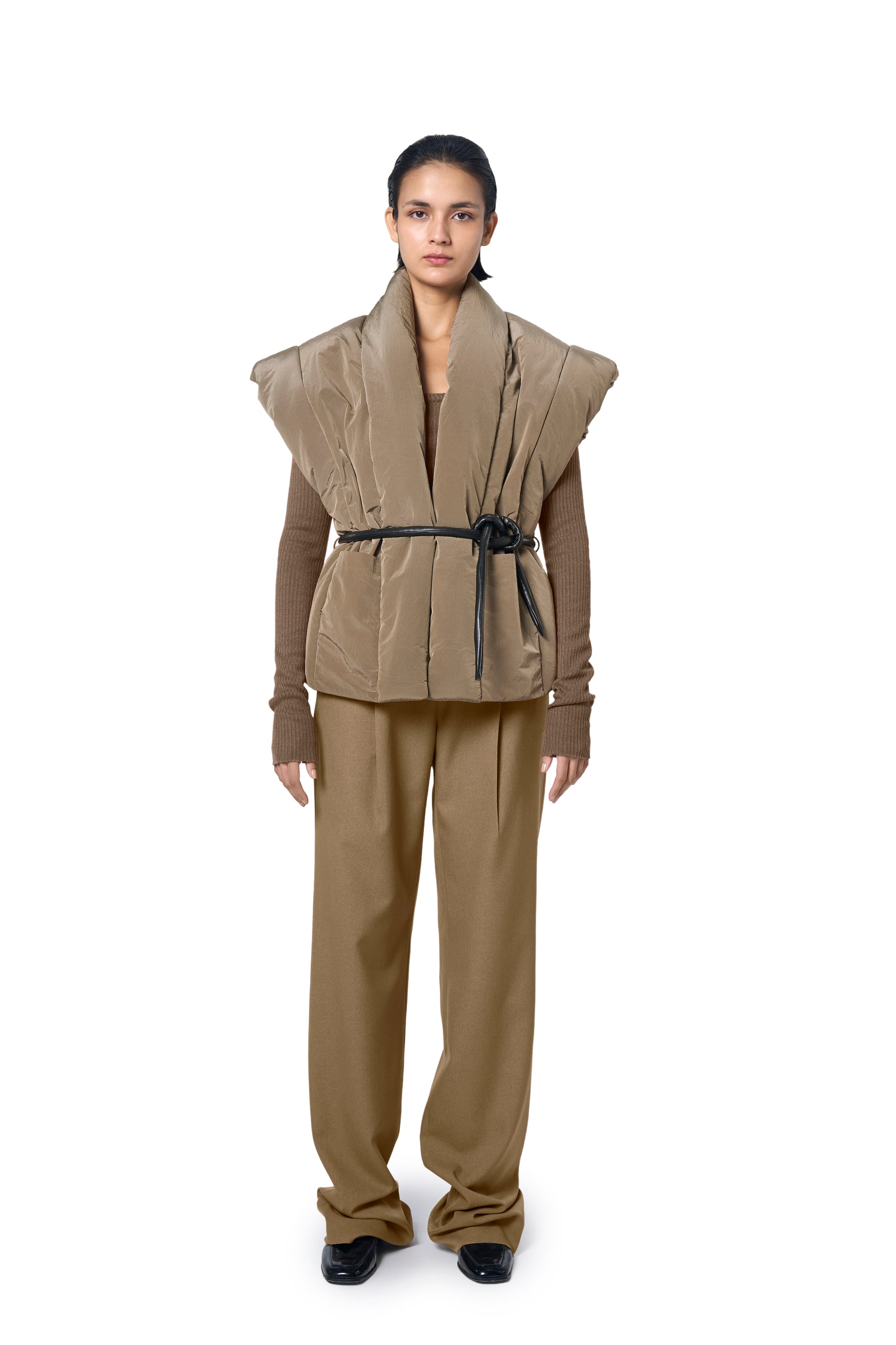 Ura's bestselling Ronnie comes back for FW25 in a technical sage fabric. This durable outerwear piece comes with a separate leather belt for an elevated look and includes thread belt loops for added convenience. It is designed with padded panels for comfort and warmth, alongside front pockets for practicality.