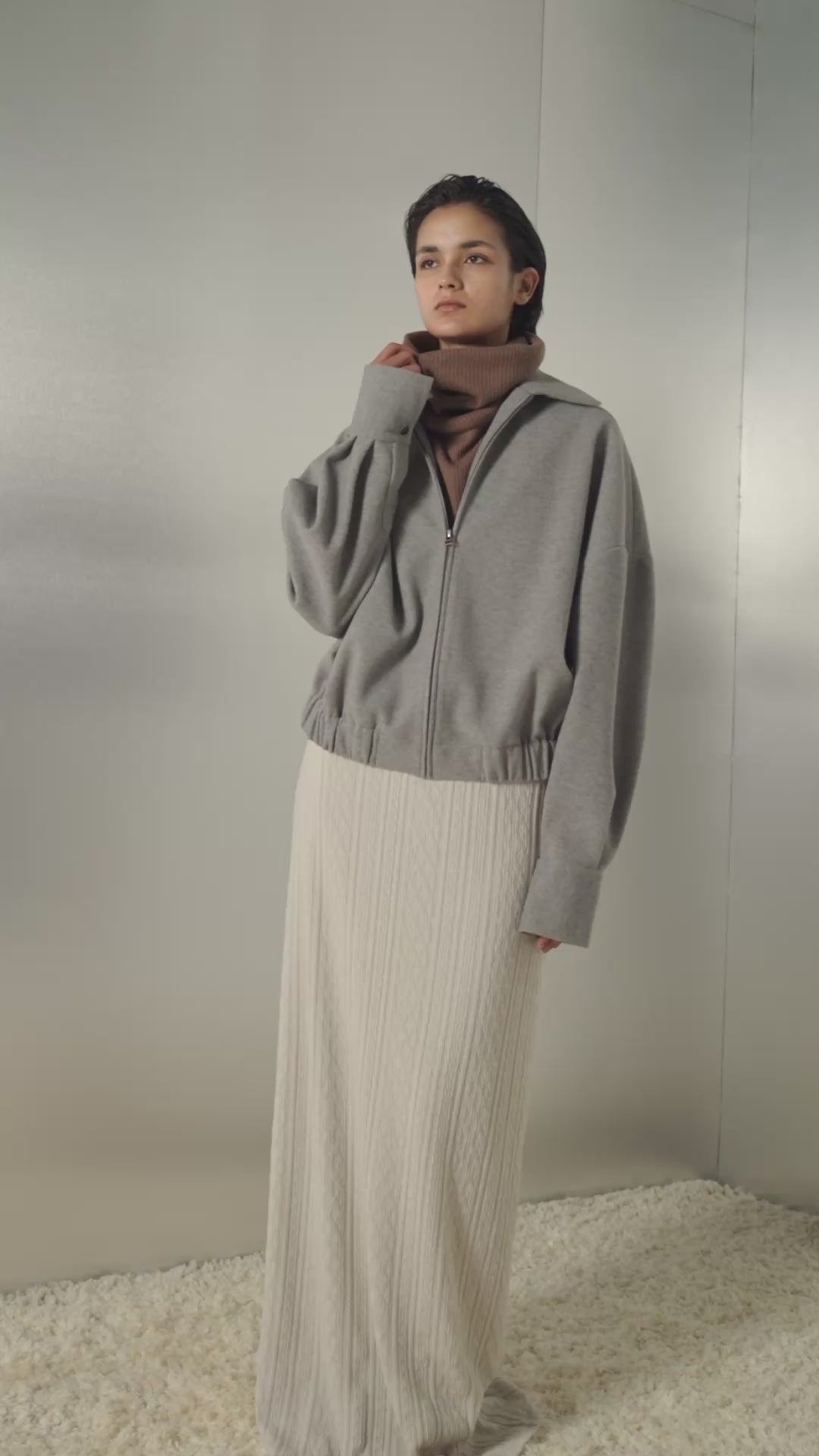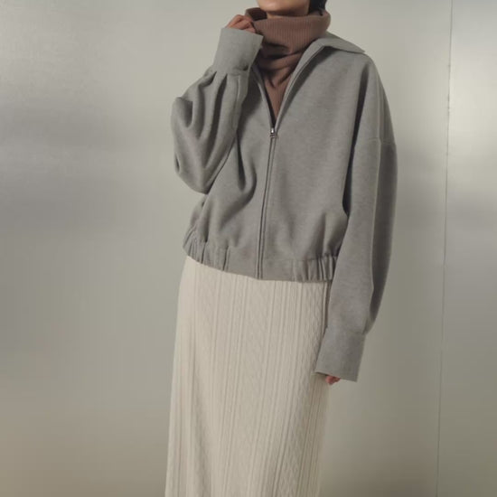 • Features a full-length zipper, a wide collar, and an elasticized hem and cuffs